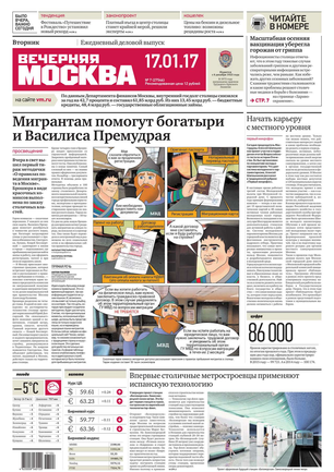 «Вечерняя Москва» — ежедневная российская вечерняя газета, старейшее из вечерних изданий в России, учрежденное в 1923 году. Выходит пять дней в неделю, кроме субботы и воскресенья. Отличается тем, что рассказывает о событиях еще не завершившегося дня. Оперативно освещает хронику и особенности жизни Москвы, охватывает все слои общества и большинство профессиональных и возрастных групп читателей.Издание представлено тремя выпусками – утренним ежедневным, вечерним (выходит три раза в неделю), еженедельным (выходит по четвергам).