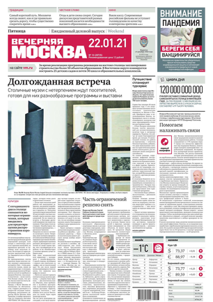 «Вечерняя Москва» — ежедневная российская вечерняя газета, старейшее из вечерних изданий в России, учрежденное в 1923 году. Выходит пять дней в неделю, кроме субботы и воскресенья. Отличается тем, что рассказывает о событиях еще не завершившегося дня. Оперативно освещает хронику и особенности жизни Москвы, охватывает все слои общества и большинство профессиональных и возрастных групп читателей.Издание представлено тремя выпусками – утренним ежедневным, вечерним (выходит три раза в неделю), еженедельным (выходит по четвергам).