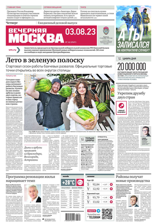 «Вечерняя Москва» — ежедневная российская вечерняя газета, старейшее из вечерних изданий в России, учрежденное в 1923 году. Выходит пять дней в неделю, кроме субботы и воскресенья. Отличается тем, что рассказывает о событиях еще не завершившегося дня. Оперативно освещает хронику и особенности жизни Москвы, охватывает все слои общества и большинство профессиональных и возрастных групп читателей.Издание представлено тремя выпусками – утренним ежедневным, вечерним (выходит три раза в неделю), еженедельным (выходит по четвергам).