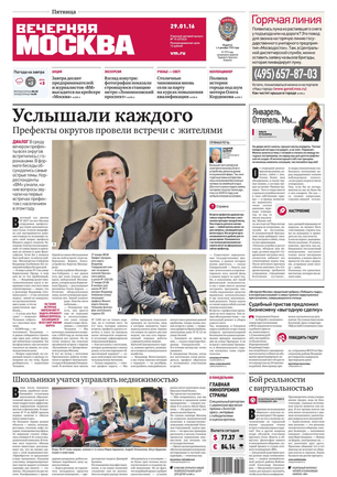 «Вечерняя Москва» — ежедневная российская вечерняя газета, старейшее из вечерних изданий в России, учрежденное в 1923 году. Выходит пять дней в неделю, кроме субботы и воскресенья. Отличается тем, что рассказывает о событиях еще не завершившегося дня. Оперативно освещает хронику и особенности жизни Москвы, охватывает все слои общества и большинство профессиональных и возрастных групп читателей.Издание представлено тремя выпусками – утренним ежедневным, вечерним (выходит три раза в неделю), еженедельным (выходит по четвергам).