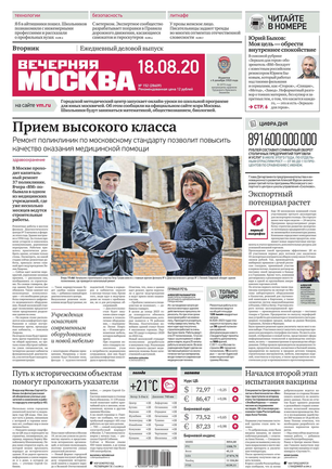 «Вечерняя Москва» — ежедневная российская вечерняя газета, старейшее из вечерних изданий в России, учрежденное в 1923 году. Выходит пять дней в неделю, кроме субботы и воскресенья. Отличается тем, что рассказывает о событиях еще не завершившегося дня. Оперативно освещает хронику и особенности жизни Москвы, охватывает все слои общества и большинство профессиональных и возрастных групп читателей.Издание представлено тремя выпусками – утренним ежедневным, вечерним (выходит три раза в неделю), еженедельным (выходит по четвергам).