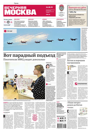 «Вечерняя Москва» — ежедневная российская вечерняя газета, старейшее из вечерних изданий в России, учрежденное в 1923 году. Выходит пять дней в неделю, кроме субботы и воскресенья. Отличается тем, что рассказывает о событиях еще не завершившегося дня. Оперативно освещает хронику и особенности жизни Москвы, охватывает все слои общества и большинство профессиональных и возрастных групп читателей.Издание представлено тремя выпусками – утренним ежедневным, вечерним (выходит три раза в неделю), еженедельным (выходит по четвергам).