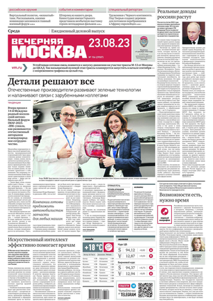 «Вечерняя Москва» — ежедневная российская вечерняя газета, старейшее из вечерних изданий в России, учрежденное в 1923 году. Выходит пять дней в неделю, кроме субботы и воскресенья. Отличается тем, что рассказывает о событиях еще не завершившегося дня. Оперативно освещает хронику и особенности жизни Москвы, охватывает все слои общества и большинство профессиональных и возрастных групп читателей.Издание представлено тремя выпусками – утренним ежедневным, вечерним (выходит три раза в неделю), еженедельным (выходит по четвергам).
