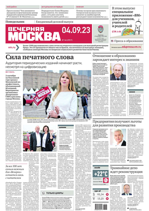 «Вечерняя Москва» — ежедневная российская вечерняя газета, старейшее из вечерних изданий в России, учрежденное в 1923 году. Выходит пять дней в неделю, кроме субботы и воскресенья. Отличается тем, что рассказывает о событиях еще не завершившегося дня. Оперативно освещает хронику и особенности жизни Москвы, охватывает все слои общества и большинство профессиональных и возрастных групп читателей.Издание представлено тремя выпусками – утренним ежедневным, вечерним (выходит три раза в неделю), еженедельным (выходит по четвергам).
