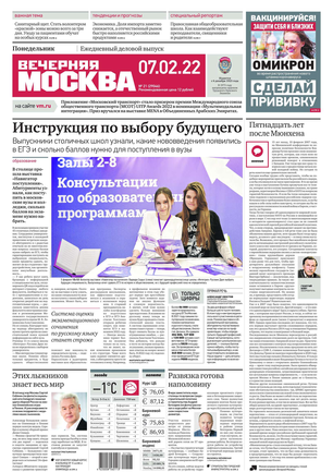 «Вечерняя Москва» — ежедневная российская вечерняя газета, старейшее из вечерних изданий в России, учрежденное в 1923 году. Выходит пять дней в неделю, кроме субботы и воскресенья. Отличается тем, что рассказывает о событиях еще не завершившегося дня. Оперативно освещает хронику и особенности жизни Москвы, охватывает все слои общества и большинство профессиональных и возрастных групп читателей.Издание представлено тремя выпусками – утренним ежедневным, вечерним (выходит три раза в неделю), еженедельным (выходит по четвергам).