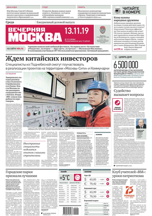 «Вечерняя Москва» — ежедневная российская вечерняя газета, старейшее из вечерних изданий в России, учрежденное в 1923 году. Выходит пять дней в неделю, кроме субботы и воскресенья. Отличается тем, что рассказывает о событиях еще не завершившегося дня. Оперативно освещает хронику и особенности жизни Москвы, охватывает все слои общества и большинство профессиональных и возрастных групп читателей.Издание представлено тремя выпусками – утренним ежедневным, вечерним (выходит три раза в неделю), еженедельным (выходит по четвергам).