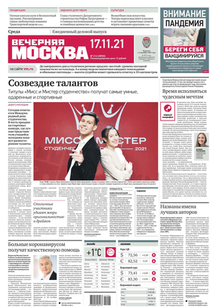 «Вечерняя Москва» — ежедневная российская вечерняя газета, старейшее из вечерних изданий в России, учрежденное в 1923 году. Выходит пять дней в неделю, кроме субботы и воскресенья. Отличается тем, что рассказывает о событиях еще не завершившегося дня. Оперативно освещает хронику и особенности жизни Москвы, охватывает все слои общества и большинство профессиональных и возрастных групп читателей.Издание представлено тремя выпусками – утренним ежедневным, вечерним (выходит три раза в неделю), еженедельным (выходит по четвергам).