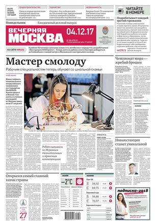 «Вечерняя Москва» — ежедневная российская вечерняя газета, старейшее из вечерних изданий в России, учрежденное в 1923 году. Выходит пять дней в неделю, кроме субботы и воскресенья. Отличается тем, что рассказывает о событиях еще не завершившегося дня. Оперативно освещает хронику и особенности жизни Москвы, охватывает все слои общества и большинство профессиональных и возрастных групп читателей.Издание представлено тремя выпусками – утренним ежедневным, вечерним (выходит три раза в неделю), еженедельным (выходит по четвергам).