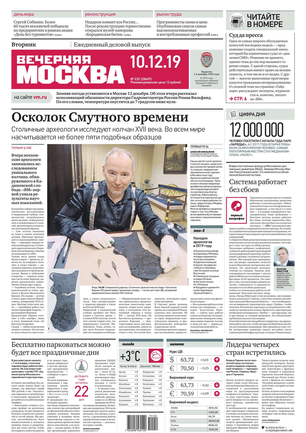 «Вечерняя Москва» — ежедневная российская вечерняя газета, старейшее из вечерних изданий в России, учрежденное в 1923 году. Выходит пять дней в неделю, кроме субботы и воскресенья. Отличается тем, что рассказывает о событиях еще не завершившегося дня. Оперативно освещает хронику и особенности жизни Москвы, охватывает все слои общества и большинство профессиональных и возрастных групп читателей.Издание представлено тремя выпусками – утренним ежедневным, вечерним (выходит три раза в неделю), еженедельным (выходит по четвергам).