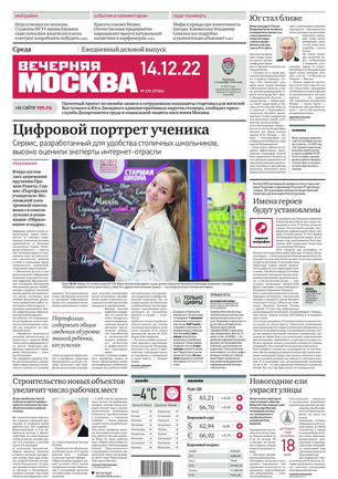 «Вечерняя Москва» — ежедневная российская вечерняя газета, старейшее из вечерних изданий в России, учрежденное в 1923 году. Выходит пять дней в неделю, кроме субботы и воскресенья. Отличается тем, что рассказывает о событиях еще не завершившегося дня. Оперативно освещает хронику и особенности жизни Москвы, охватывает все слои общества и большинство профессиональных и возрастных групп читателей.Издание представлено тремя выпусками – утренним ежедневным, вечерним (выходит три раза в неделю), еженедельным (выходит по четвергам).