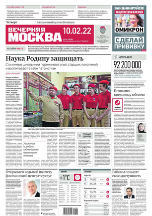 «Вечерняя Москва» — ежедневная российская вечерняя газета, старейшее из вечерних изданий в России, учрежденное в 1923 году. Выходит пять дней в неделю, кроме субботы и воскресенья. Отличается тем, что рассказывает о событиях еще не завершившегося дня. Оперативно освещает хронику и особенности жизни Москвы, охватывает все слои общества и большинство профессиональных и возрастных групп читателей.Издание представлено тремя выпусками – утренним ежедневным, вечерним (выходит три раза в неделю), еженедельным (выходит по четвергам).
