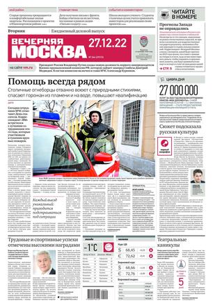 «Вечерняя Москва» — ежедневная российская вечерняя газета, старейшее из вечерних изданий в России, учрежденное в 1923 году. Выходит пять дней в неделю, кроме субботы и воскресенья. Отличается тем, что рассказывает о событиях еще не завершившегося дня. Оперативно освещает хронику и особенности жизни Москвы, охватывает все слои общества и большинство профессиональных и возрастных групп читателей.Издание представлено тремя выпусками – утренним ежедневным, вечерним (выходит три раза в неделю), еженедельным (выходит по четвергам).