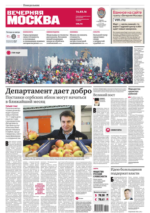 «Вечерняя Москва» — ежедневная российская вечерняя газета, старейшее из вечерних изданий в России, учрежденное в 1923 году. Выходит пять дней в неделю, кроме субботы и воскресенья. Отличается тем, что рассказывает о событиях еще не завершившегося дня. Оперативно освещает хронику и особенности жизни Москвы, охватывает все слои общества и большинство профессиональных и возрастных групп читателей.Издание представлено тремя выпусками – утренним ежедневным, вечерним (выходит три раза в неделю), еженедельным (выходит по четвергам).