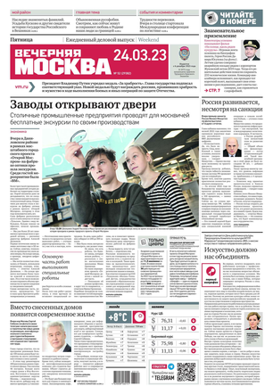 «Вечерняя Москва» — ежедневная российская вечерняя газета, старейшее из вечерних изданий в России, учрежденное в 1923 году. Выходит пять дней в неделю, кроме субботы и воскресенья. Отличается тем, что рассказывает о событиях еще не завершившегося дня. Оперативно освещает хронику и особенности жизни Москвы, охватывает все слои общества и большинство профессиональных и возрастных групп читателей.Издание представлено тремя выпусками – утренним ежедневным, вечерним (выходит три раза в неделю), еженедельным (выходит по четвергам).