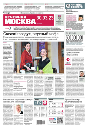 «Вечерняя Москва» — ежедневная российская вечерняя газета, старейшее из вечерних изданий в России, учрежденное в 1923 году. Выходит пять дней в неделю, кроме субботы и воскресенья. Отличается тем, что рассказывает о событиях еще не завершившегося дня. Оперативно освещает хронику и особенности жизни Москвы, охватывает все слои общества и большинство профессиональных и возрастных групп читателей.Издание представлено тремя выпусками – утренним ежедневным, вечерним (выходит три раза в неделю), еженедельным (выходит по четвергам).