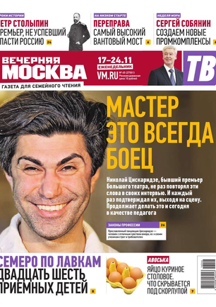«Вечерняя Москва» — ежедневная российская вечерняя газета, старейшее из вечерних изданий в России, учрежденное в 1923 году. Выходит пять дней в неделю, кроме субботы и воскресенья. Отличается тем, что рассказывает о событиях еще не завершившегося дня. Оперативно освещает хронику и особенности жизни Москвы, охватывает все слои общества и большинство профессиональных и возрастных групп читателей.Издание представлено тремя выпусками – утренним ежедневным, вечерним (выходит три раза в неделю), еженедельным (выходит по четвергам).