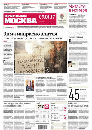 «Вечерняя Москва» — ежедневная российская вечерняя газета, старейшее из вечерних изданий в России, учрежденное в 1923 году. Выходит пять дней в неделю, кроме субботы и воскресенья. Отличается тем, что рассказывает о событиях еще не завершившегося дня. Оперативно освещает хронику и особенности жизни Москвы, охватывает все слои общества и большинство профессиональных и возрастных групп читателей.Издание представлено тремя выпусками – утренним ежедневным, вечерним (выходит три раза в неделю), еженедельным (выходит по четвергам).