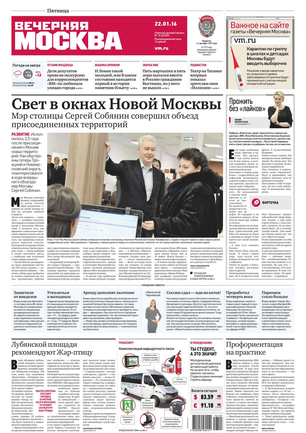 «Вечерняя Москва» — ежедневная российская вечерняя газета, старейшее из вечерних изданий в России, учрежденное в 1923 году. Выходит пять дней в неделю, кроме субботы и воскресенья. Отличается тем, что рассказывает о событиях еще не завершившегося дня. Оперативно освещает хронику и особенности жизни Москвы, охватывает все слои общества и большинство профессиональных и возрастных групп читателей.Издание представлено тремя выпусками – утренним ежедневным, вечерним (выходит три раза в неделю), еженедельным (выходит по четвергам).