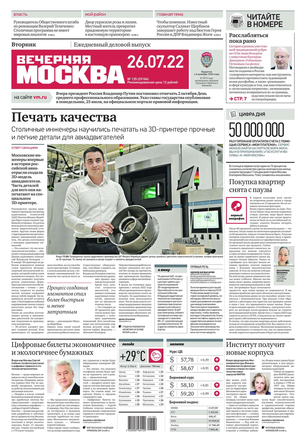 «Вечерняя Москва» — ежедневная российская вечерняя газета, старейшее из вечерних изданий в России, учрежденное в 1923 году. Выходит пять дней в неделю, кроме субботы и воскресенья. Отличается тем, что рассказывает о событиях еще не завершившегося дня. Оперативно освещает хронику и особенности жизни Москвы, охватывает все слои общества и большинство профессиональных и возрастных групп читателей.Издание представлено тремя выпусками – утренним ежедневным, вечерним (выходит три раза в неделю), еженедельным (выходит по четвергам).