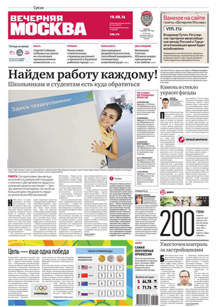 «Вечерняя Москва» — ежедневная российская вечерняя газета, старейшее из вечерних изданий в России, учрежденное в 1923 году. Выходит пять дней в неделю, кроме субботы и воскресенья. Отличается тем, что рассказывает о событиях еще не завершившегося дня. Оперативно освещает хронику и особенности жизни Москвы, охватывает все слои общества и большинство профессиональных и возрастных групп читателей.Издание представлено тремя выпусками – утренним ежедневным, вечерним (выходит три раза в неделю), еженедельным (выходит по четвергам).