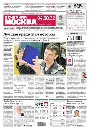 «Вечерняя Москва» — ежедневная российская вечерняя газета, старейшее из вечерних изданий в России, учрежденное в 1923 году. Выходит пять дней в неделю, кроме субботы и воскресенья. Отличается тем, что рассказывает о событиях еще не завершившегося дня. Оперативно освещает хронику и особенности жизни Москвы, охватывает все слои общества и большинство профессиональных и возрастных групп читателей.Издание представлено тремя выпусками – утренним ежедневным, вечерним (выходит три раза в неделю), еженедельным (выходит по четвергам).