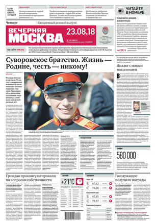 «Вечерняя Москва» — ежедневная российская вечерняя газета, старейшее из вечерних изданий в России, учрежденное в 1923 году. Выходит пять дней в неделю, кроме субботы и воскресенья. Отличается тем, что рассказывает о событиях еще не завершившегося дня. Оперативно освещает хронику и особенности жизни Москвы, охватывает все слои общества и большинство профессиональных и возрастных групп читателей.Издание представлено тремя выпусками – утренним ежедневным, вечерним (выходит три раза в неделю), еженедельным (выходит по четвергам).
