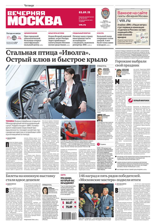 «Вечерняя Москва» — ежедневная российская вечерняя газета, старейшее из вечерних изданий в России, учрежденное в 1923 году. Выходит пять дней в неделю, кроме субботы и воскресенья. Отличается тем, что рассказывает о событиях еще не завершившегося дня. Оперативно освещает хронику и особенности жизни Москвы, охватывает все слои общества и большинство профессиональных и возрастных групп читателей.Издание представлено тремя выпусками – утренним ежедневным, вечерним (выходит три раза в неделю), еженедельным (выходит по четвергам).