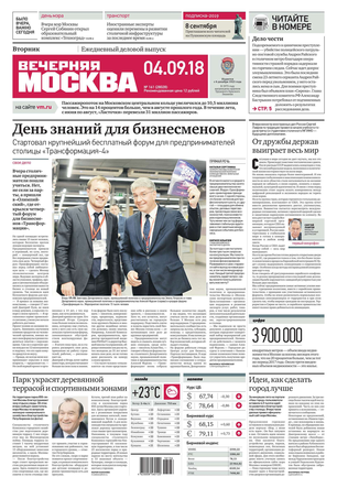 «Вечерняя Москва» — ежедневная российская вечерняя газета, старейшее из вечерних изданий в России, учрежденное в 1923 году. Выходит пять дней в неделю, кроме субботы и воскресенья. Отличается тем, что рассказывает о событиях еще не завершившегося дня. Оперативно освещает хронику и особенности жизни Москвы, охватывает все слои общества и большинство профессиональных и возрастных групп читателей.Издание представлено тремя выпусками – утренним ежедневным, вечерним (выходит три раза в неделю), еженедельным (выходит по четвергам).