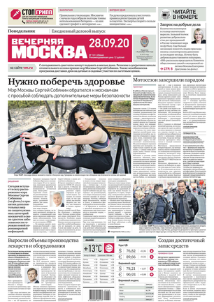 «Вечерняя Москва» — ежедневная российская вечерняя газета, старейшее из вечерних изданий в России, учрежденное в 1923 году. Выходит пять дней в неделю, кроме субботы и воскресенья. Отличается тем, что рассказывает о событиях еще не завершившегося дня. Оперативно освещает хронику и особенности жизни Москвы, охватывает все слои общества и большинство профессиональных и возрастных групп читателей.Издание представлено тремя выпусками – утренним ежедневным, вечерним (выходит три раза в неделю), еженедельным (выходит по четвергам).