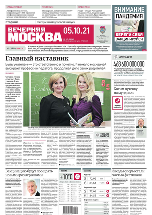 «Вечерняя Москва» — ежедневная российская вечерняя газета, старейшее из вечерних изданий в России, учрежденное в 1923 году. Выходит пять дней в неделю, кроме субботы и воскресенья. Отличается тем, что рассказывает о событиях еще не завершившегося дня. Оперативно освещает хронику и особенности жизни Москвы, охватывает все слои общества и большинство профессиональных и возрастных групп читателей.Издание представлено тремя выпусками – утренним ежедневным, вечерним (выходит три раза в неделю), еженедельным (выходит по четвергам).
