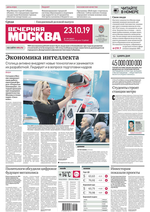 «Вечерняя Москва» — ежедневная российская вечерняя газета, старейшее из вечерних изданий в России, учрежденное в 1923 году. Выходит пять дней в неделю, кроме субботы и воскресенья. Отличается тем, что рассказывает о событиях еще не завершившегося дня. Оперативно освещает хронику и особенности жизни Москвы, охватывает все слои общества и большинство профессиональных и возрастных групп читателей.Издание представлено тремя выпусками – утренним ежедневным, вечерним (выходит три раза в неделю), еженедельным (выходит по четвергам).