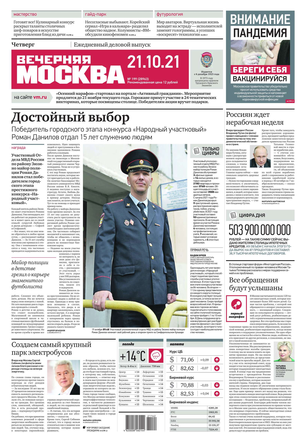 «Вечерняя Москва» — ежедневная российская вечерняя газета, старейшее из вечерних изданий в России, учрежденное в 1923 году. Выходит пять дней в неделю, кроме субботы и воскресенья. Отличается тем, что рассказывает о событиях еще не завершившегося дня. Оперативно освещает хронику и особенности жизни Москвы, охватывает все слои общества и большинство профессиональных и возрастных групп читателей.Издание представлено тремя выпусками – утренним ежедневным, вечерним (выходит три раза в неделю), еженедельным (выходит по четвергам).