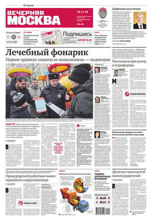 «Вечерняя Москва» — ежедневная российская вечерняя газета, старейшее из вечерних изданий в России, учрежденное в 1923 году. Выходит пять дней в неделю, кроме субботы и воскресенья. Отличается тем, что рассказывает о событиях еще не завершившегося дня. Оперативно освещает хронику и особенности жизни Москвы, охватывает все слои общества и большинство профессиональных и возрастных групп читателей.Издание представлено тремя выпусками – утренним ежедневным, вечерним (выходит три раза в неделю), еженедельным (выходит по четвергам).