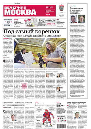 «Вечерняя Москва» — ежедневная российская вечерняя газета, старейшее из вечерних изданий в России, учрежденное в 1923 году. Выходит пять дней в неделю, кроме субботы и воскресенья. Отличается тем, что рассказывает о событиях еще не завершившегося дня. Оперативно освещает хронику и особенности жизни Москвы, охватывает все слои общества и большинство профессиональных и возрастных групп читателей.Издание представлено тремя выпусками – утренним ежедневным, вечерним (выходит три раза в неделю), еженедельным (выходит по четвергам).