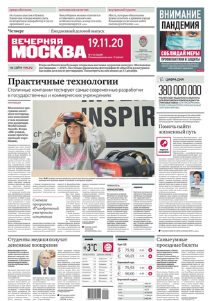 «Вечерняя Москва» — ежедневная российская вечерняя газета, старейшее из вечерних изданий в России, учрежденное в 1923 году. Выходит пять дней в неделю, кроме субботы и воскресенья. Отличается тем, что рассказывает о событиях еще не завершившегося дня. Оперативно освещает хронику и особенности жизни Москвы, охватывает все слои общества и большинство профессиональных и возрастных групп читателей.Издание представлено тремя выпусками – утренним ежедневным, вечерним (выходит три раза в неделю), еженедельным (выходит по четвергам).