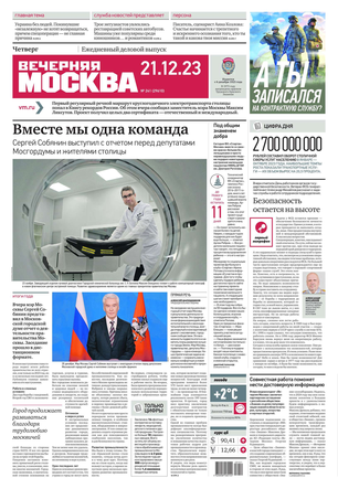 «Вечерняя Москва» — ежедневная российская вечерняя газета, старейшее из вечерних изданий в России, учрежденное в 1923 году. Выходит пять дней в неделю, кроме субботы и воскресенья. Отличается тем, что рассказывает о событиях еще не завершившегося дня. Оперативно освещает хронику и особенности жизни Москвы, охватывает все слои общества и большинство профессиональных и возрастных групп читателей.Издание представлено тремя выпусками – утренним ежедневным, вечерним (выходит три раза в неделю), еженедельным (выходит по четвергам).