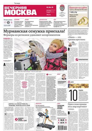 «Вечерняя Москва» — ежедневная российская вечерняя газета, старейшее из вечерних изданий в России, учрежденное в 1923 году. Выходит пять дней в неделю, кроме субботы и воскресенья. Отличается тем, что рассказывает о событиях еще не завершившегося дня. Оперативно освещает хронику и особенности жизни Москвы, охватывает все слои общества и большинство профессиональных и возрастных групп читателей.Издание представлено тремя выпусками – утренним ежедневным, вечерним (выходит три раза в неделю), еженедельным (выходит по четвергам).
