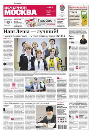 «Вечерняя Москва» — ежедневная российская вечерняя газета, старейшее из вечерних изданий в России, учрежденное в 1923 году. Выходит пять дней в неделю, кроме субботы и воскресенья. Отличается тем, что рассказывает о событиях еще не завершившегося дня. Оперативно освещает хронику и особенности жизни Москвы, охватывает все слои общества и большинство профессиональных и возрастных групп читателей.Издание представлено тремя выпусками – утренним ежедневным, вечерним (выходит три раза в неделю), еженедельным (выходит по четвергам).