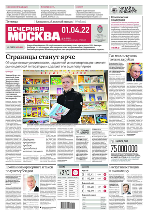 «Вечерняя Москва» — ежедневная российская вечерняя газета, старейшее из вечерних изданий в России, учрежденное в 1923 году. Выходит пять дней в неделю, кроме субботы и воскресенья. Отличается тем, что рассказывает о событиях еще не завершившегося дня. Оперативно освещает хронику и особенности жизни Москвы, охватывает все слои общества и большинство профессиональных и возрастных групп читателей.Издание представлено тремя выпусками – утренним ежедневным, вечерним (выходит три раза в неделю), еженедельным (выходит по четвергам).