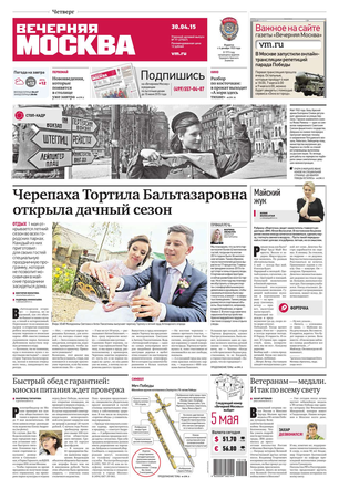 «Вечерняя Москва» — ежедневная российская вечерняя газета, старейшее из вечерних изданий в России, учрежденное в 1923 году. Выходит пять дней в неделю, кроме субботы и воскресенья. Отличается тем, что рассказывает о событиях еще не завершившегося дня. Оперативно освещает хронику и особенности жизни Москвы, охватывает все слои общества и большинство профессиональных и возрастных групп читателей.Издание представлено тремя выпусками – утренним ежедневным, вечерним (выходит три раза в неделю), еженедельным (выходит по четвергам).