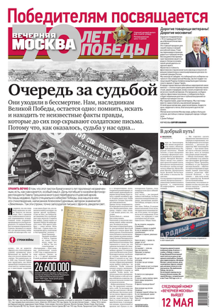 Вечером на страницах «Вечерки» появляются эксклюзивные интервью ньюсмейкеров культуры и шоу-бизнеса, репортажи журналистов по вечерней Москве, афиша нашего города. Один раз в неделю выходит специальный студенческий вечерний номер.