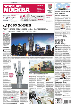 «Вечерняя Москва» — ежедневная российская вечерняя газета, старейшее из вечерних изданий в России, учрежденное в 1923 году. Выходит пять дней в неделю, кроме субботы и воскресенья. Отличается тем, что рассказывает о событиях еще не завершившегося дня. Оперативно освещает хронику и особенности жизни Москвы, охватывает все слои общества и большинство профессиональных и возрастных групп читателей.Издание представлено тремя выпусками – утренним ежедневным, вечерним (выходит три раза в неделю), еженедельным (выходит по четвергам).