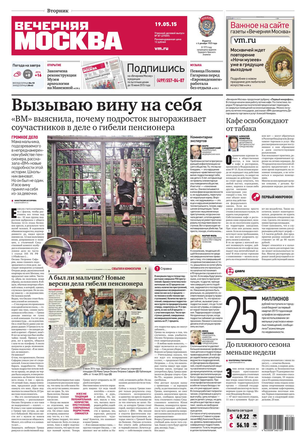 «Вечерняя Москва» — ежедневная российская вечерняя газета, старейшее из вечерних изданий в России, учрежденное в 1923 году. Выходит пять дней в неделю, кроме субботы и воскресенья. Отличается тем, что рассказывает о событиях еще не завершившегося дня. Оперативно освещает хронику и особенности жизни Москвы, охватывает все слои общества и большинство профессиональных и возрастных групп читателей.Издание представлено тремя выпусками – утренним ежедневным, вечерним (выходит три раза в неделю), еженедельным (выходит по четвергам).
