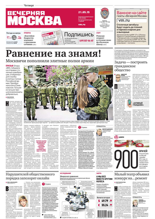 «Вечерняя Москва» — ежедневная российская вечерняя газета, старейшее из вечерних изданий в России, учрежденное в 1923 году. Выходит пять дней в неделю, кроме субботы и воскресенья. Отличается тем, что рассказывает о событиях еще не завершившегося дня. Оперативно освещает хронику и особенности жизни Москвы, охватывает все слои общества и большинство профессиональных и возрастных групп читателей.Издание представлено тремя выпусками – утренним ежедневным, вечерним (выходит три раза в неделю), еженедельным (выходит по четвергам).