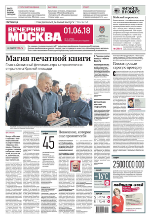 «Вечерняя Москва» — ежедневная российская вечерняя газета, старейшее из вечерних изданий в России, учрежденное в 1923 году. Выходит пять дней в неделю, кроме субботы и воскресенья. Отличается тем, что рассказывает о событиях еще не завершившегося дня. Оперативно освещает хронику и особенности жизни Москвы, охватывает все слои общества и большинство профессиональных и возрастных групп читателей.Издание представлено тремя выпусками – утренним ежедневным, вечерним (выходит три раза в неделю), еженедельным (выходит по четвергам).