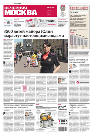 «Вечерняя Москва» — ежедневная российская вечерняя газета, старейшее из вечерних изданий в России, учрежденное в 1923 году. Выходит пять дней в неделю, кроме субботы и воскресенья. Отличается тем, что рассказывает о событиях еще не завершившегося дня. Оперативно освещает хронику и особенности жизни Москвы, охватывает все слои общества и большинство профессиональных и возрастных групп читателей.Издание представлено тремя выпусками – утренним ежедневным, вечерним (выходит три раза в неделю), еженедельным (выходит по четвергам).